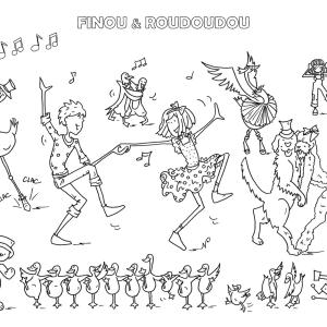 Rejoins Finou, son cousin, l’ours Roudoudou et Robo le robot dans leur imaginaire farfelu où tout est permis et colorie leurs aventures !