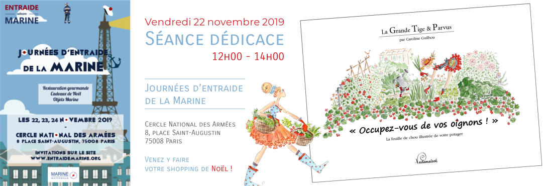 Vente-dédicace du livre "Occupez-vous de vos oignons !" - La feuille de chou illustrée de votre potager et des autres livres Vademelook à l'occasion des Journées d'Entraide de la Marine qui se tiendra au Cercle National des Armées à Paris.