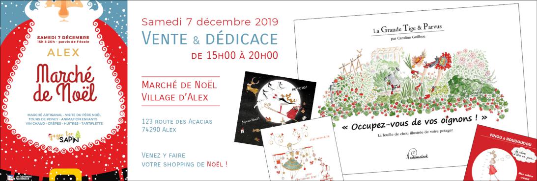 Vente-dédicace du livre "Occupez-vous de vos oignons !" - La feuille de chou illustrée de votre potager et des autres livres Vademelook à l'occasion du bel et convivial Marché de Noël du Village d'Alex !