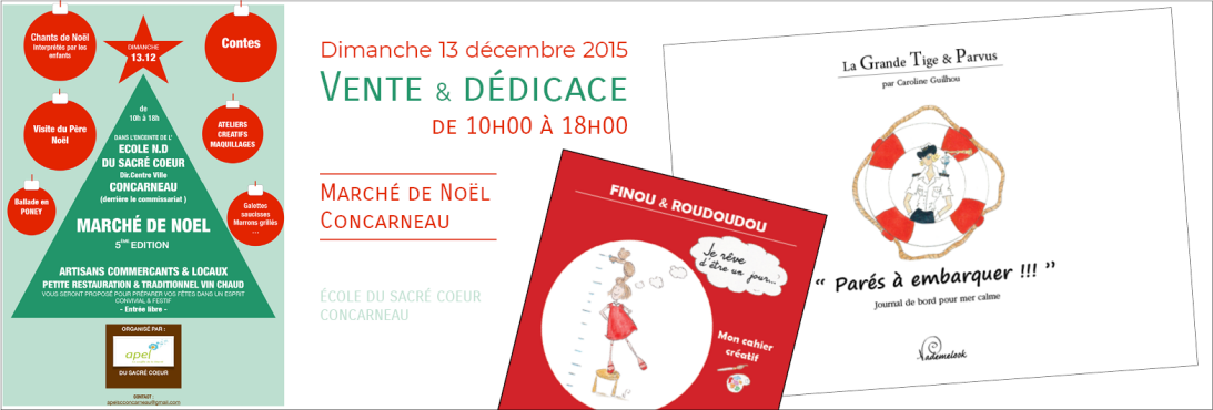 Vente & dédicace de mes livres, cahiers de coloriages et cartes de voeux Vademelook à l'occasion de la 1ère édition du Marché de Noël de ma jolie Ville de Fouesnant !