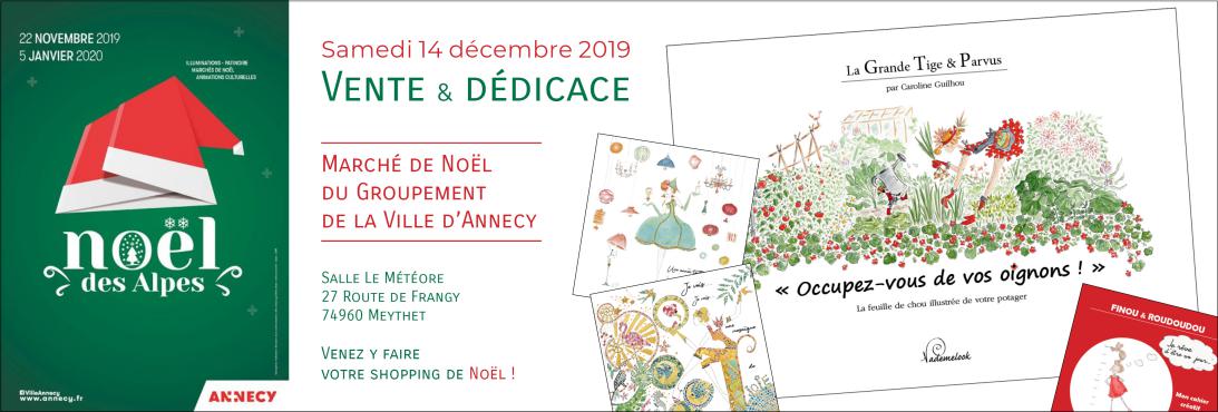 Vente-dédicace du livre "Occupez-vous de vos oignons !" - La feuille de chou illustrée de votre potager et des autres livres Vademelook à l'occasion du Marché de Noël du Groupement de la Ville d'Annecy !