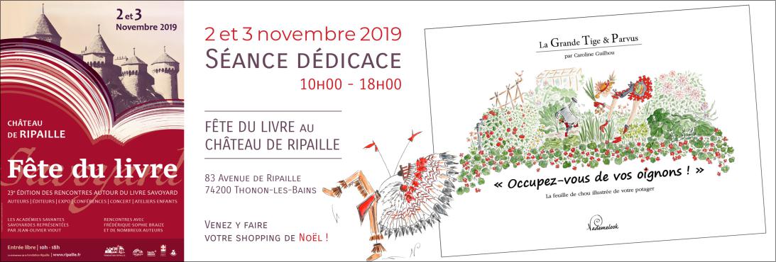 Vente-dédicace du livre "Occupez-vous de vos oignons !" - La feuille de chou illustrée de votre potager et des autres livres Vademelook à l'occasion de la 23e Fête du Livre au Château de Ripaille les samedi 2 et dimanche 3 novembre.